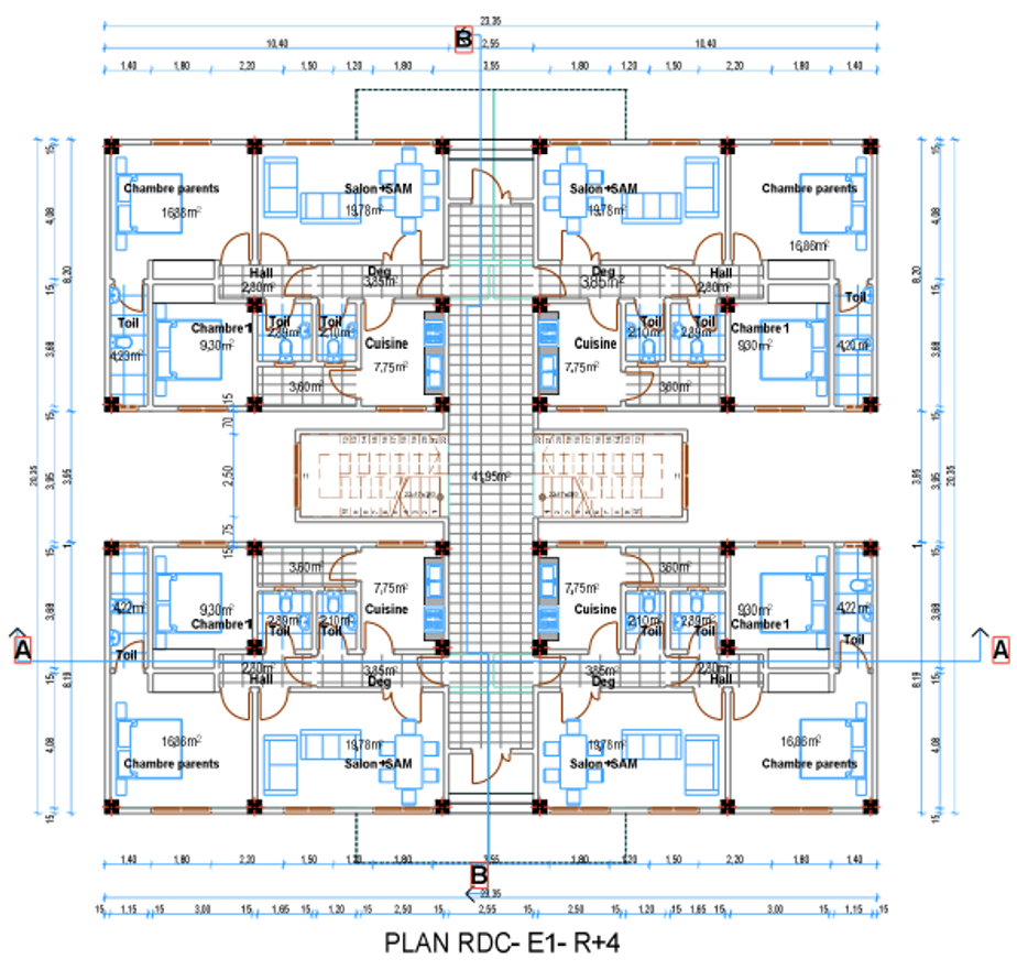 - 240 appartements F4 et des espaces commerciaux en Rez-de-chaussée.